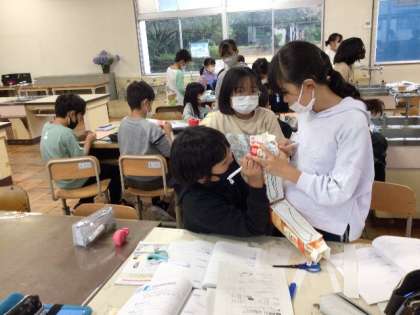 11/10 理科(4年生) 公開日 2023/11/10 更新日 2023/11/10 校長室から 「わたしたちの体と運動」 腕が動く仕組みについて学習します。 筋肉のつくりと動きを考えるために、牛乳パックで模型を作っていました。