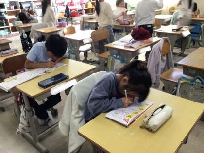 11/13 国語(2年生) 公開日 2023/11/13 更新日 2023/11/13 校長室から 漢字ドリルを使って、漢字の練習です。 先生に見てもらったり、友だち同士で確認したりしながらがんばっていました。