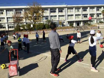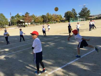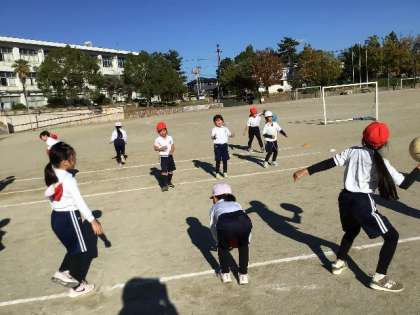 ボールを使った運動です。 3m程度の距離で、ボールを投げあっていました。
