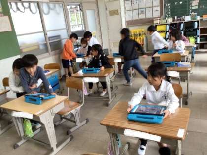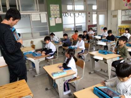 11/15 国語(1年生) 公開日 2023/11/15 更新日 2023/11/15 校長室から 「なにに見えるかな」 教科書を見て、何に見えるか考え、先生や友だちと話す学習です。 タブレットの発表ノートを使って、それぞれの考えを発表していました。