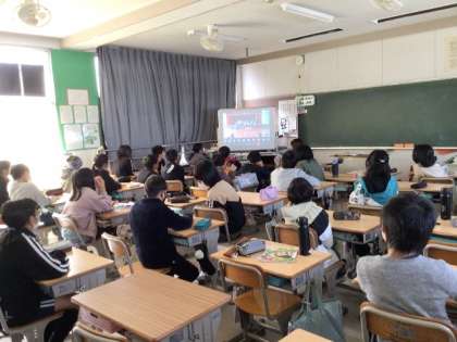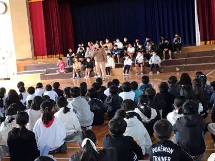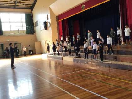 初めに全校で「Jump」を歌った後、各クラスの発表です。