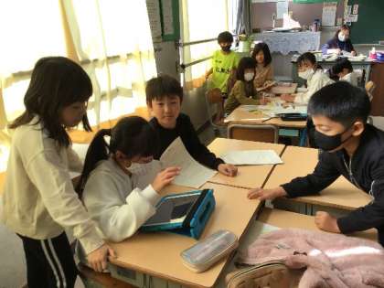 町探検について、タブレットを使ってまとめました。