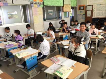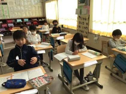 11/22 算数(3年生) 公開日 2023/11/22 更新日 2023/11/22 校長室から 「あまりのあるわり算」 あまりのあるわり算について学習しています。 問題文を読んで、あまりの長さをどう表すか考えていました。