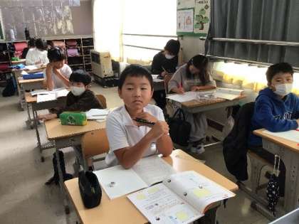 11/28 算数(4年生) 公開日 2023/11/28 更新日 2023/11/28 校長室から 「面積」 計算して面積を求める方法を学習しています。 四角形のたてよこの長さをもとに、かけ算を使って考えていました。