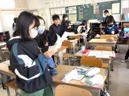 12/5 外国語(6年生) 公開日 2023/12/05 更新日 2023/12/05 校長室から 「How much is it?」 ALTの先生と一緒に学習です。 いくらになるかをたずね、こたえていました。