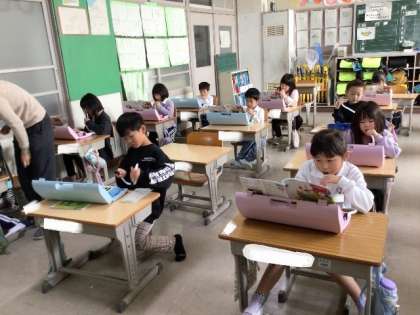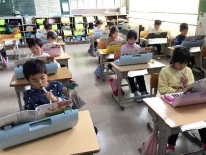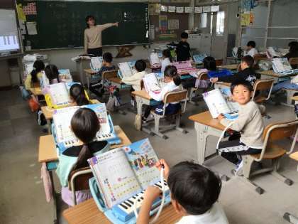 「ひのまる」 鍵盤ハーモニカで演奏します。 音の高さに気をつけながら練習していました。