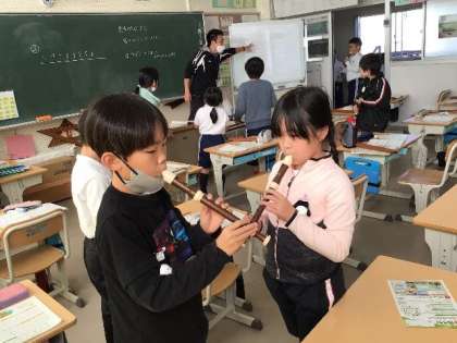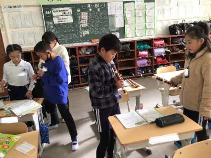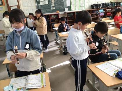 「ゆかいな木きん」 リコーダーの練習です。 拍子にのって演奏できるように、がんばっていました。