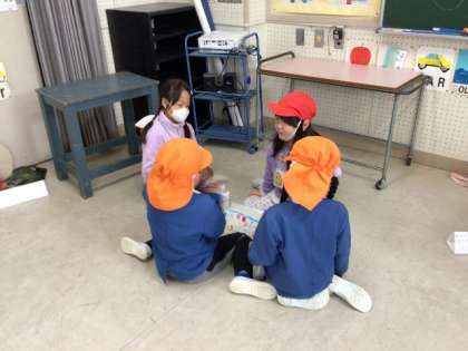 12/18 生活科(1年生) 公開日 2023/12/18 更新日 2023/12/18 校長室から 来年度本校に入学する園児を招いて、おもちゃまつりを行っています。 お兄さん、お姉さんらしく、準備・練習を生かして、優しく教えてあげていました。