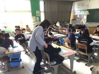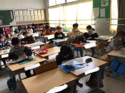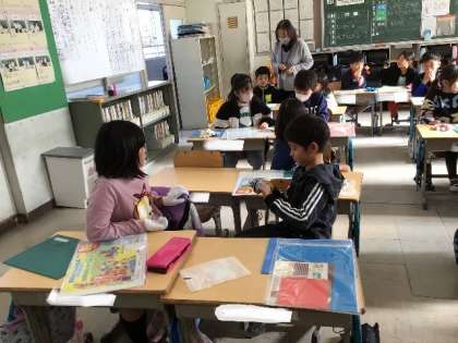 12/18 図画工作(2年生) 公開日 2023/12/18 更新日 2023/12/18 校長室から 「まどからこんにちわ」 窓が開く仕組みから、思いついたものを表します。 それぞれが想像を広げ、楽しそうに考えていました。