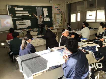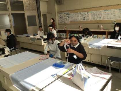 「ひと針に心をこめて」 エプロンを作ります。 布を切って、これから縫っていくそうです。