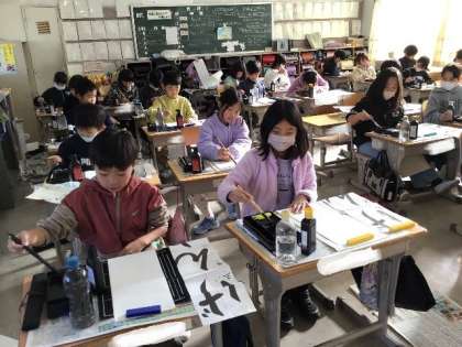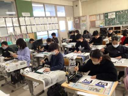 今年も初日は、全校一斉の書初め大会を行いました。
