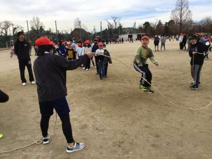 1/11 青フレ2 公開日 2024/01/11 更新日 2024/01/11 校長室から 6年生が1年生の手を引いて挑戦したり、みんなでタイミングを教え合ったりする姿がたくさん見られ、暖かい雰囲気のなかで、楽しく活動することができました。