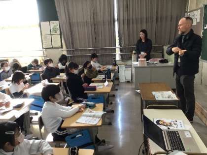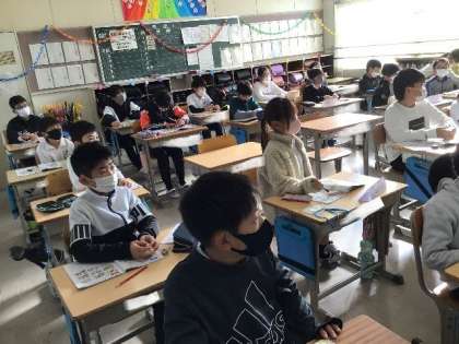 ALTの先生と一緒に学習です。 先生の英語を聞き取りながら、その答えを考えていました。