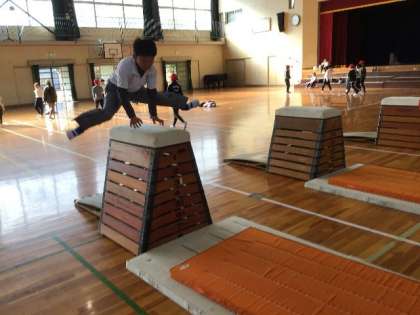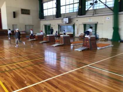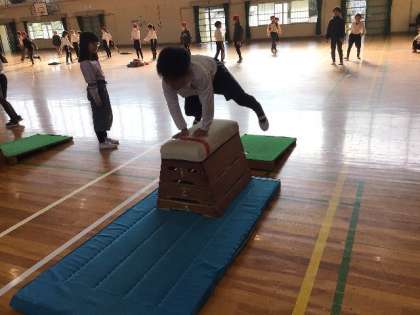 跳び箱に挑戦です。 それぞれ自分で目標をもって、いろいろな高さに挑戦していました。