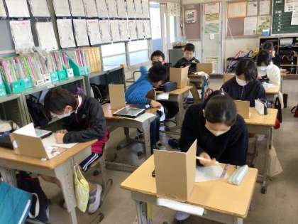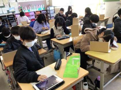 1/22 図画工作(5年生) 公開日 2024/01/22 更新日 2024/01/22 校長室から 「ミラクルミラーステージ」 鏡を活用し、空間を意識しながら製作しました。 タブレットの発表ノートを使って、友だちの作品を鑑賞していました。