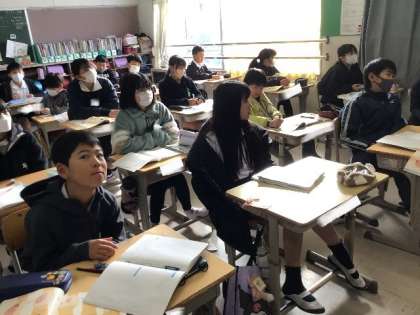 「生命のつながり」 いろいろな動物の誕生について学習します。 ウミガメの誕生の様子を動画で見ていました。