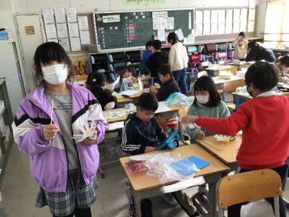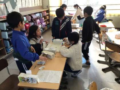 体育館で、他のクラスと交流し、お披露目をたそうです。