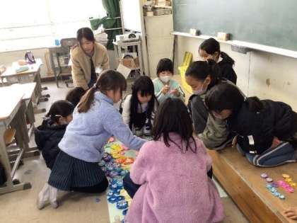 2月になり、6年生の卒業も近づいてきています。 在校生がお祝いの飾りやプレゼントを作ってくれています。