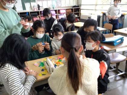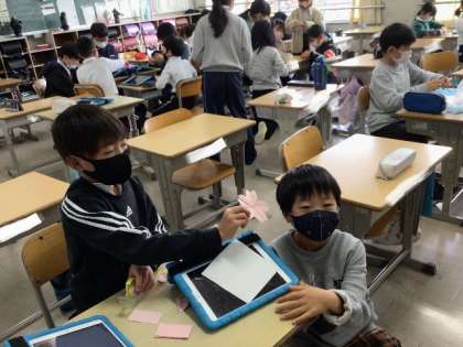 2/9 学活(4年生) 公開日 2024/02/09 更新日 2024/02/09 校長室から 飾りの花のつくり方は、タブレット等で探していました。 小さな花を組み合わせる方法を見つけて、作っている児童もいました。