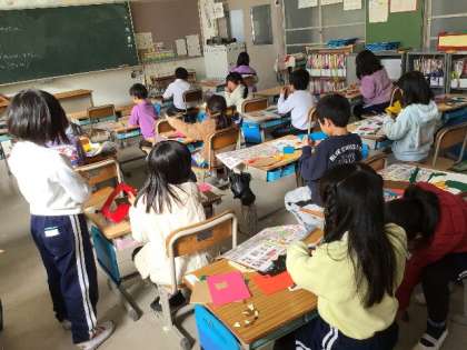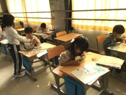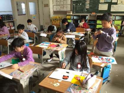 2/9 図画工作(1年生) 公開日 2024/02/09 更新日 2024/02/09 校長室から 「〇〇しているじぶん」 色タック版を貼りつけて作ります。 色の使い方や細かな部分など、それぞれ工夫して作っていました。
