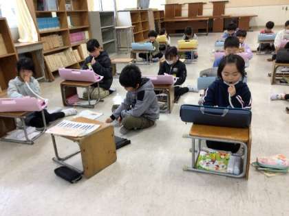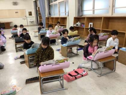 「こぐまの二月」 鍵盤ハーモニカと木琴で演奏です。 互いの音を聞きながら、みんなで合わせていました。