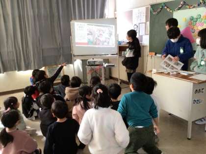 5年生が作った、6年生の思い出スライドを鑑賞です。