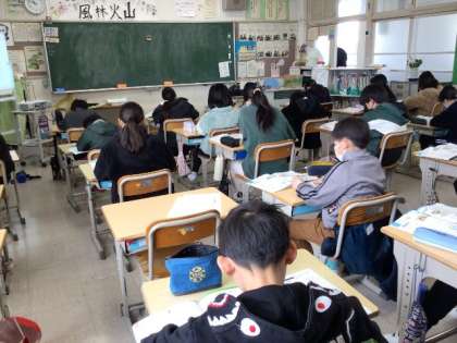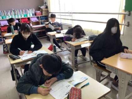 教科書を見て、身の回りにどのような危険があるかを考え、その防止について話し合っていました。