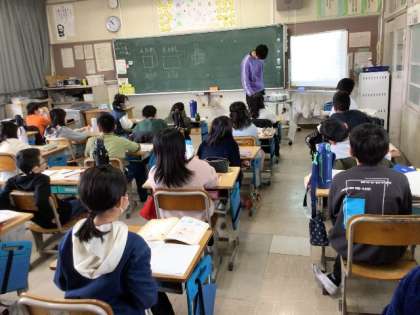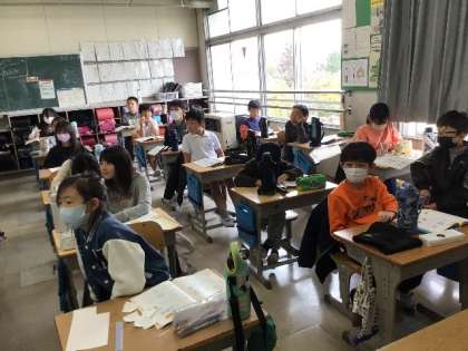 スクリーンに映した直方体を見ながら、面の数等をみんなで考えていました。