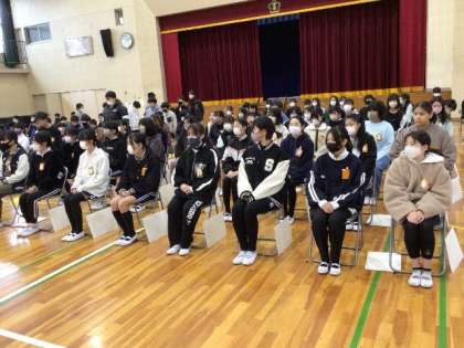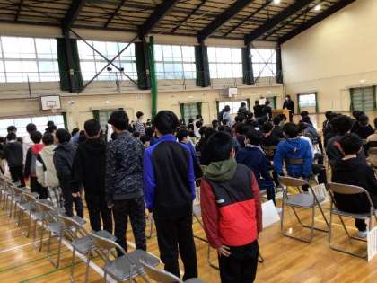 証書の受け渡しの練習です。 一人一人名前を読んで、タイミングを確認していました。