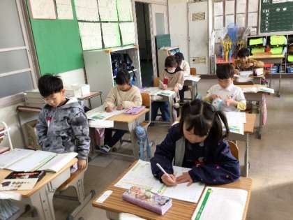 3/7 国語(1年生) 公開日 2024/03/07 更新日 2024/03/07 校長室から 「よこがきのかきかた」「ことばをたのしもう」 ひらがな、カタカナ、漢字の書き方について学習します。 『ことばのきまり』を使って、がんばって練習していました。