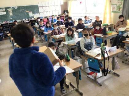 3/8 算数(4年生) 公開日 2024/03/08 更新日 2024/03/08 校長室から 「直方体と立方体」 面と面の関係について学習しています。 垂直・平行などの言葉を使いながら、発表し合っていました。