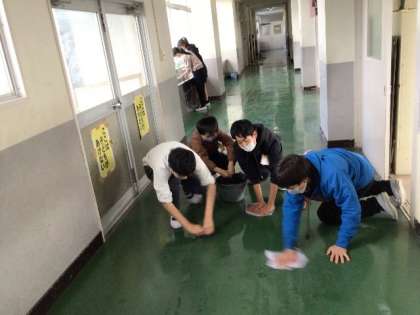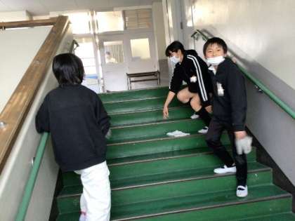 6年生が、学校の清掃活動に取り組んでくれました。 おかげでピカピカになりました。どうもありがとう。