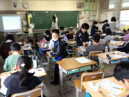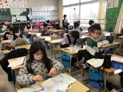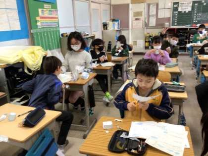 3/12 算数(4年生) 公開日 2024/03/12 更新日 2024/03/12 校長室から 「直方体と立方体」 展開図を使って面と面のつながりについて学習します。 実際に展開図を切って、立方体を作っていました。