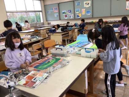 3/12 図画工作(2年生) 公開日 2024/03/12 更新日 2024/03/12 校長室から 今年度の思い出の場面を選んで描くそうです。 写真を資料に使ったり、色を工夫して彩色したりしながら、がんばっていました。