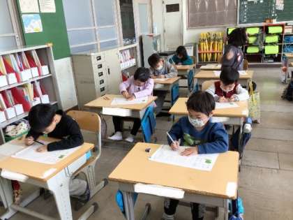 「すきなところをみつけよう」 単元のまとめテストです。 みんな真剣に取り組んでいました。