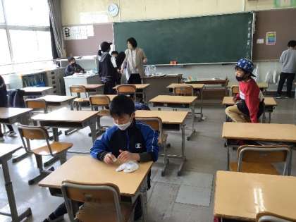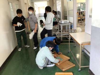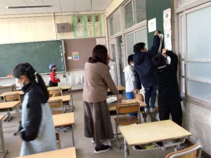 掲示物をはがしたり、机をみがいたり、みんな真剣に取り組んでくれていました。