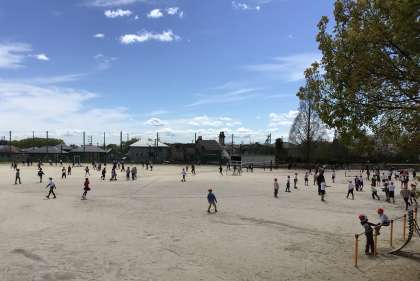 午後にはすっかり雨もあがり、たくさんの子どもたちが運動場で過ごしていました。