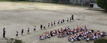 今日は、1年生が「ボール投げ」の練習をしていました。ボールを投げる、という動作は、普段の生活で行う機会が少ない動作ですが、体の使い方を考えながら、遠くまでボールを投げようとがんばっていました。