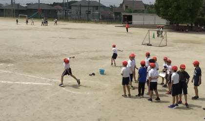 低学年に引き続き、高学年が体力テストを行いました。高学年は、走ったり投げたりという種目に加え、柔軟性や敏捷性に関する種目もあります。