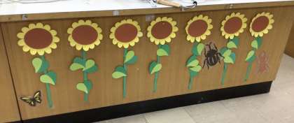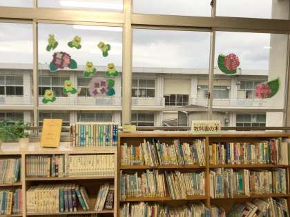 先週、図書ボランティアの皆様に、図書室の掲示物の作成や図書の整理をしていただきました。夏らしく素敵な雰囲気になり、図書室が明るくなりました。