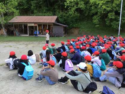 野外学習2日目が始まりました。晴天に恵まれ、朝のつどいを行いました。