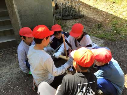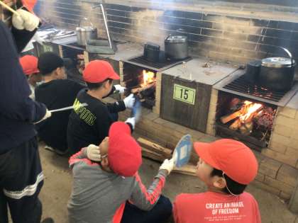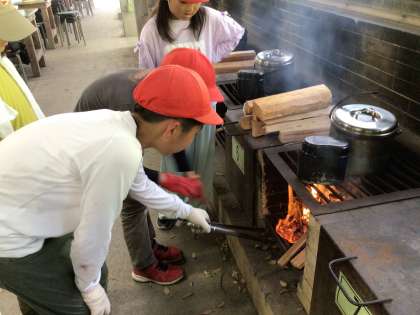 グループで協力して起こした火を使って、カレーを作り、ご飯を炊きます。