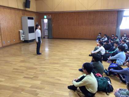 子どもたちと2日間活動を共にしてくださったセンターの所員さんが、子どもたちに、「みんなの活躍がすばらしかった。学年の人数が多い学校で、こんなにしっかり活動できる学校はなかなかありません」と、活動の感想を話してくださいました。