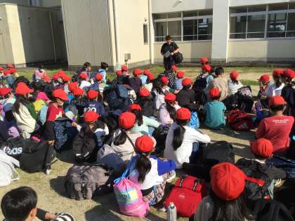 学校に到着し、他学年の先生方に「お帰り」と迎えていただきました。