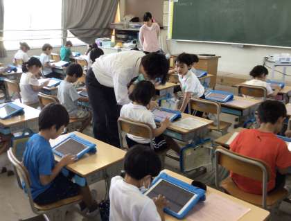1年生は、5月の連休明けから学習用タブレットを使用しています。