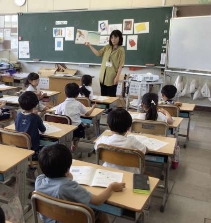 1年生が、学校図書館司書さんから、図書館の上手な使い方やおすすめの本について教えていただきました。