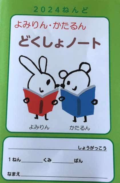 豊田市中央図書館のキャラクター「よみりん かたるん」の読書ノートを使って学習しています。