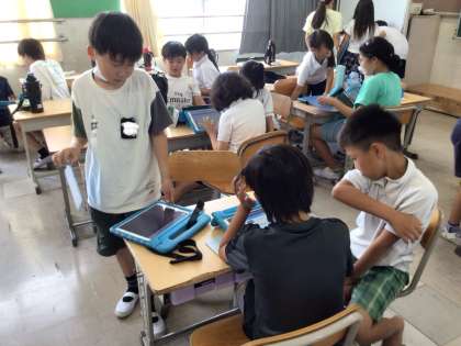 7月9日 学習の様子から(4年生) 公開日 2024/07/09 更新日 2024/07/09 校長室から 4年生が、学級の仲間とかかわりながら、学習を進めています。 校外学習「矢作川探検」について、チームごとに学習用タブレットで資料を作って発表の練習をしたり、国語科の学習で書いた文章を読み合ったりして学び合っていました。