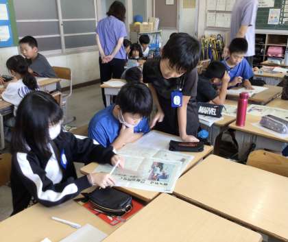 9月6日 学習の様子から(5年生) 公開日 2024/09/06 更新日 2024/09/06 校長室から 5年生が、国語科で「新聞記事を読み比べよう」の学習に取り組んでいます。 記事のタイトルや写真の使い方などをグループの仲間と比べながら、書き手の意図を話し合っていました。