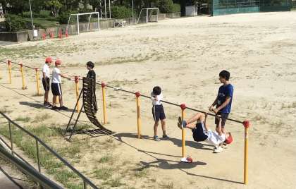 9月6日 学習の様子から(6年生) 公開日 2024/09/06 更新日 2024/09/06 校長室から 6年生が体育科で、いろいろな技を試しながら鉄棒の練習をしています。 足をつかずに連続でまわる等、難しい技に挑戦していました。